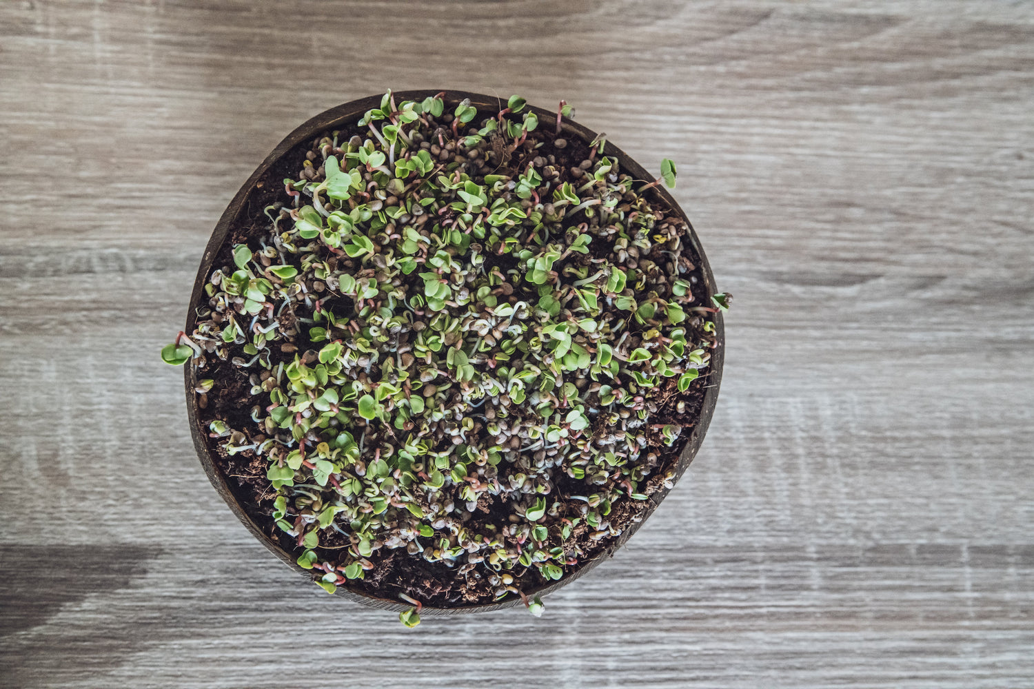 8. Nach zirka 6-8 Tagen kannst du deine Microgreens ernten. Empfehlung: Mit einer Schere knapp über der Wurzel abschneiden (Wurzeln und Erde nicht mitessen).