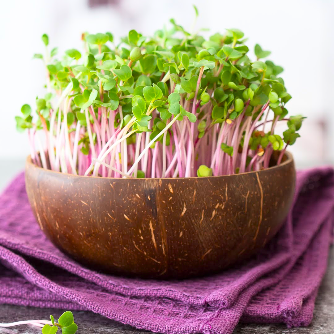 Microgreens? Das sind junge, essbare Keimpflanzen, die in nur wenigen Tagen zuhause oder im Büro ganz bequem auf der Fensterbank gezogen werden können: